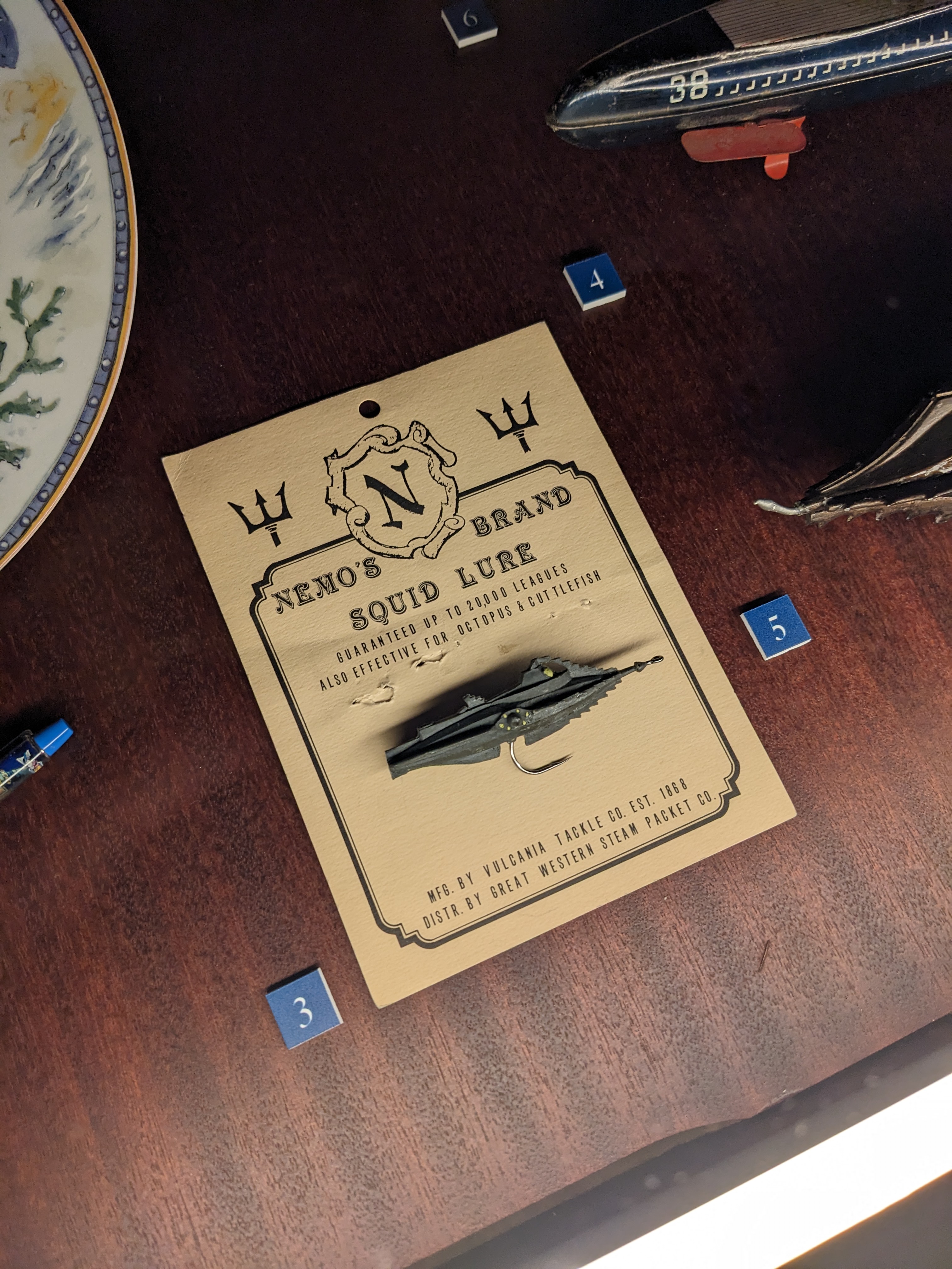 I’ve already mentioned the books and models, but my favourite things were those little items that show that despite the time period, humans are humans, and fans are fans. There was so much Voyages Extraordinaries merch on display. There were cards, plates, stationary, and even a 20,000 Leagues Under the Sea branded squid lure. It’s really cool to see all this stuff and realise that even 150 odd years ago people enjoyed fantastical stories and fictional characters so much that they’d go out and buy merch. It seems the desire to surround ourselves with reminders of our favourite fictional worlds is timeless.